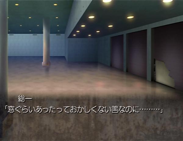 一見何の問題もないように見えますが、実は大きなバグ。 このシーン、総一がシャッターを調べていて、そこにさくみんと優希を呼びます。 二人は総一の元へ歩きながら次のような会話を交わします。 咲実 「優希ちゃん、御剣さんが呼んでます」 優希 「うん」 優希は傍らの咲実に頷くと、2人で総一の元へと向かった。 優希 「お姉ちゃんの言う通りだったね?」 その途中で優希は咲実に話しかける。 咲実 「ええ。でもこの暗さ、本当に出られるのかどうか………」 そう言って咲実はホールを見回した。 ホールは咲実の言うように大分暗かった。 腕時計によればまだ午後の1時を回ったあたりの筈だ。 それなのに出入り口のある筈のこの場所には外からの光は入っていなかった。 他の場所と同じように電灯の明かりがホールを照らしてはいたが、その広さのおかげで目立った明るさにはなっていない。 総一 「窓ぐらいあったっておかしくない筈なのに………」 優希 「窓………そうだお姉ちゃん、今までわたし達、1個も窓を見てないよね?」 咲実 「そういえば………!」 咲実は優希の指摘に目を見張った。 ―――これだけの建物で、窓一つ無いなんて………!! もしかしたらこの場所も………!? もうおわかりですね? 総一のセリフではなく、本当はさくみんのセリフなのです。 二人と離れた場所にいた総一が突然会話に割り込んで来てびびったよ。 |