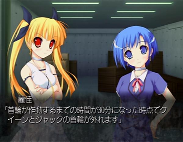 と、このように説明する麗佳たんですが大きな勘違いをしている模様。 実際のところ、勘違いしてるのは麗佳たんでなくテキスト書いた人なんですよね。 ナレーションがそれを証明しています。 咲実のクイーンの条件は残り30分まで生存している事。 渚のジャックは同行者が残り30分まで生存している事。 つまり2人はそれまで生きていれば、それだけで首輪を外す事ができるのだ。 ところで実際の解除条件はこちら。